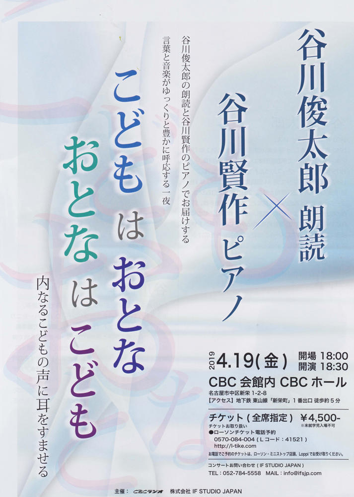 第19回 成城 響きあう街 プロジェクト 詩と音楽 響きあう 谷川俊太郎 朗読 谷川賢作 ピアノ