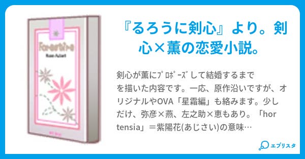 剣心×薫・二次小説 『吾亦紅』サンプル *** 縁側に出て涼んでいたら、金木犀の香りが鼻腔をくすぐる。 左頬の十字傷を持つその青年には珍しい着流しの姿で、母屋の縁側に腰を下ろし、小さな庭を眺めながら. 流浪の歌姫るろうに剣心 今日:16 hit、昨日:2 hit、合計:11,9 hit 小 | 中 | 大 | 剣「それでは、行ってくるでござるよ、薫殿。.
