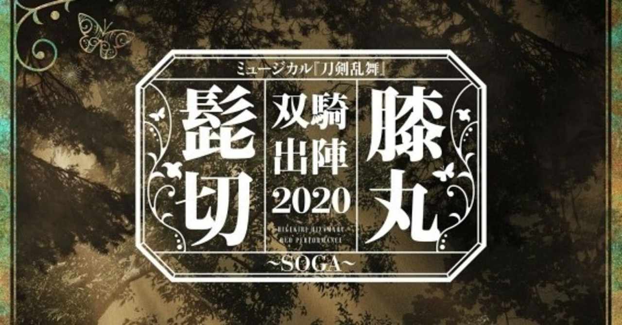 ミュージカル『刀剣乱舞』 髭切膝丸 双騎出陣19 ~soga~. ミュージカル『刀剣乱舞』 髭切膝丸 双騎出陣 ~soga~が、10月1日(木)より再開した。同公演は、兵庫・あましんアルカイックホールにて兵庫公演(8月29日~9月6日)を行ったのち、9月27日(日)より舞浜アンフィシアターにて東京公演をスタートさせる予定だったが、ミュージカル『刀剣. タイトル:ミュージカル『刀剣乱舞』 髭切膝丸 双騎出陣 ~soga~観劇日:ライブ配信にて、11公演/12公演(兵庫)①.