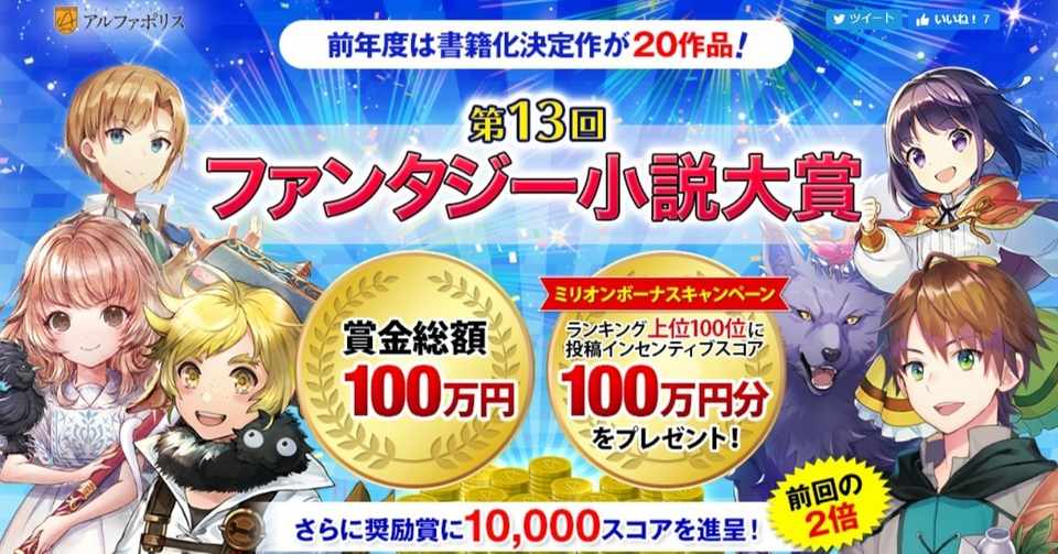 第13回 年 ファンタジー小説大賞 小説投稿サイトのアルファポリス