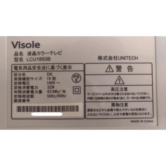 中古 ユニテク 19インチ地デジ液晶テレビ Visole Lcu 1850b リモコン B Casカード付 黄ばみ 3 499