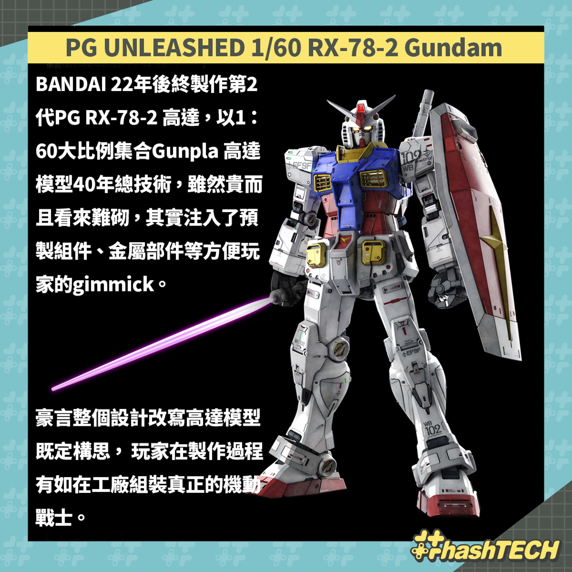 ガンプラ 40 周年記念アイテム「 PERFECT GRADE UNLEASHED 1/60 スケール RX-78-2 ガンダム」が企画進行中です。. 今次發表會推出的新作「pg unleashed 1/60 rx-78-2 ガンダム」為 1/60 比例的組裝模型,稅前定價在25,000 日元,連稅後約為港幣 $2,000。預計會在今年12月正式發售。. 等了這麼久,萬代終於是正式公布了這款pg unleashed 1/60 rx-78-2高達,而這款產品的賣點真的是非常多,那麼廢話不多說,一起來看看吧!.