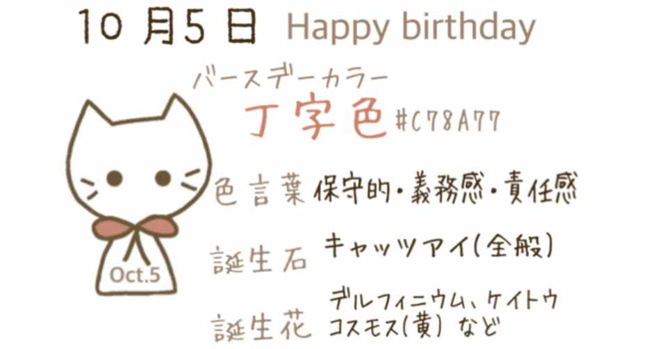 10 5 誕生 日. 10月05日 丁字色 ちょうじいろ #c78a77 R:199 G:138 B:119 H:14 S:40 B:78 L*:65.48 a*:29.84 b*:25.3 C:0% M:31% Y:40% K:22%. ※10月7日以外の誕生花は、 365日の誕生花の一覧 をご覧下さい。 情報サイト誕プレ おすすめ度について 10/7の全ての誕生花には、「 情報サイト誕プレ おすすめ度」という星5つ~星1つの5段階で評価された表があります。. 9 同じ誕生日の有名人は誰がいる?どんな特徴がある? 10 10月31日の星座は蠍座!各星座と.